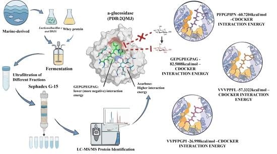 Fermentation-Driven Generation of α-Glucosidase Inhibitory Whey Peptides by Marine-Derived Probiotic Lacticaseibacillus casei DS31: Activity Enrichment and Peptidomics