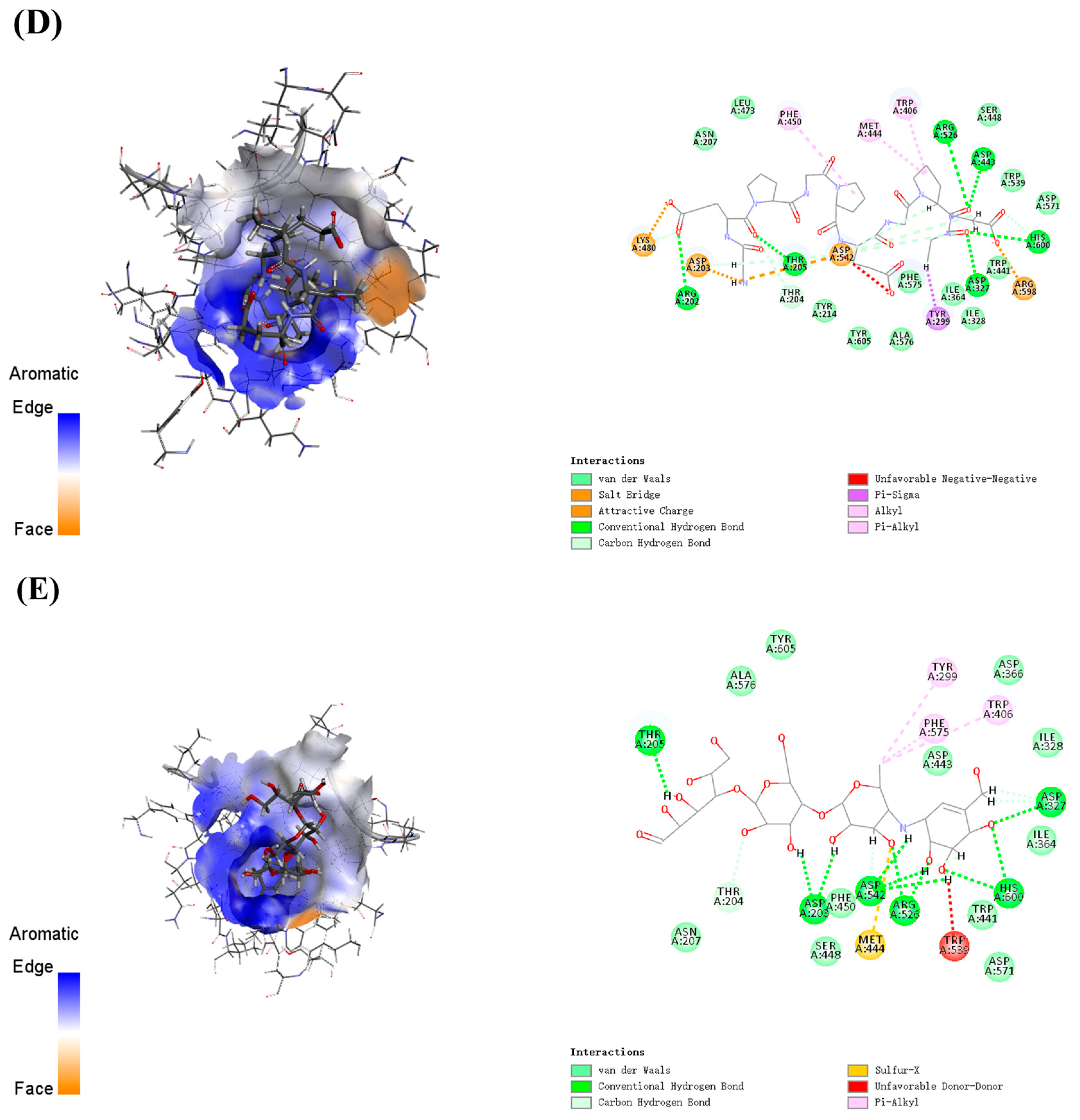 | Acarbose | Asp327, Asp542, Arg526, Thr205, Asp203, His600 | none | Trp406, Tyr299, Phe575 |