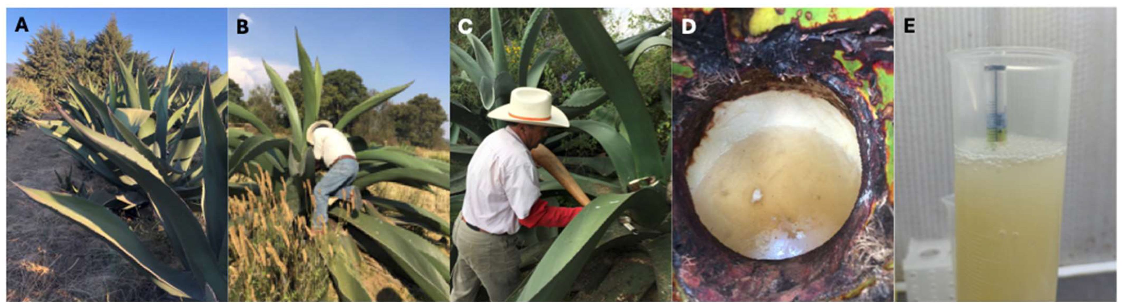 - Valdivieso Solís, D.G.; Vargas Escamilla, C.A.; Mondragón Contreras, N.; Galván Valle, G.A.; Gilés-Gómez, M.; Bolívar, F.; Escalante, A. Sustainable production of pulque and maguey in mexico: Current situation and perspectives. Front. Sustain. Food Syst. 2021, 5, 678168. [Google Scholar] [CrossRef]