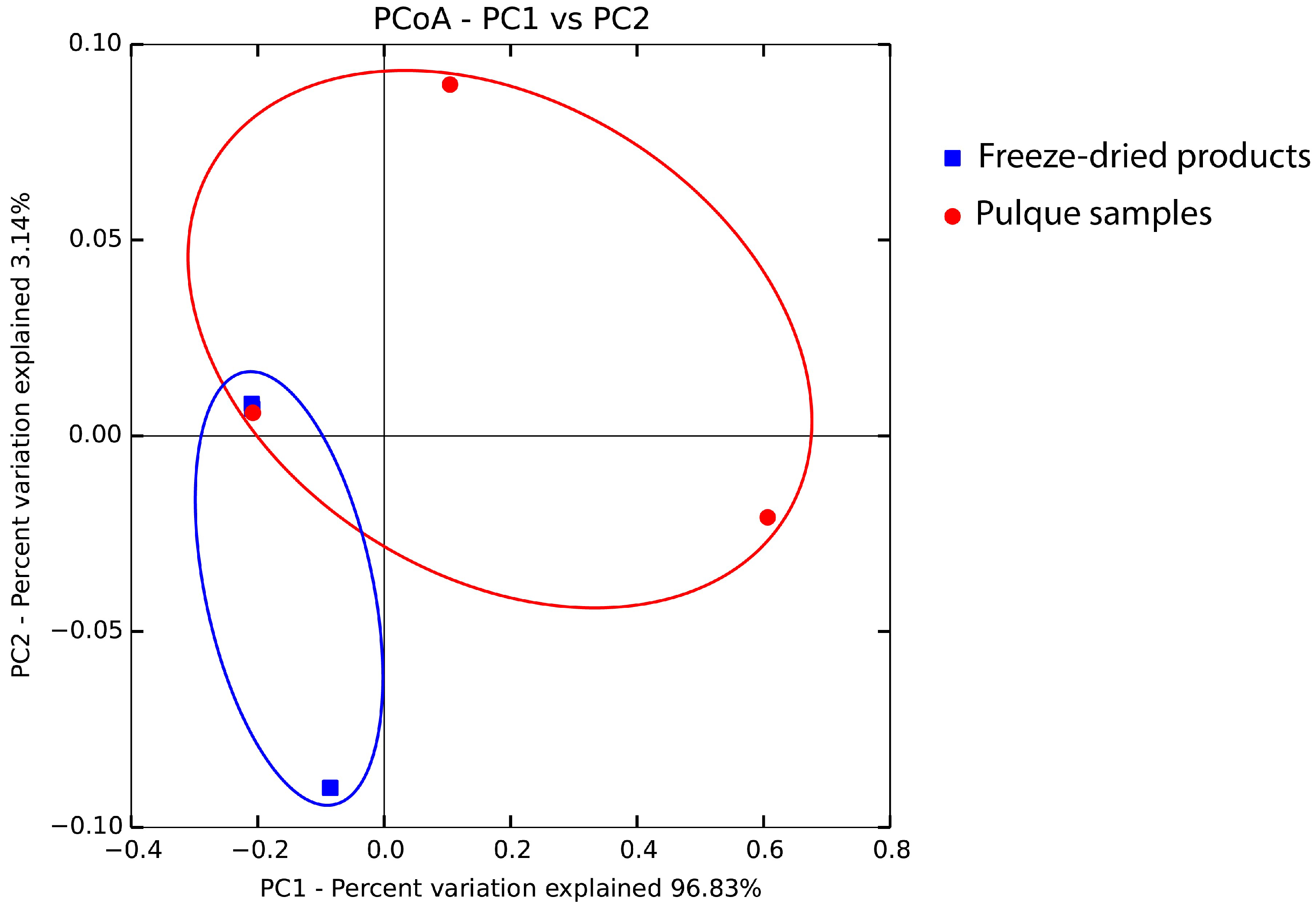2.4. Metagenomic DNA Extraction from Overnight-Fermented Pulque and Freeze-Dried Samples