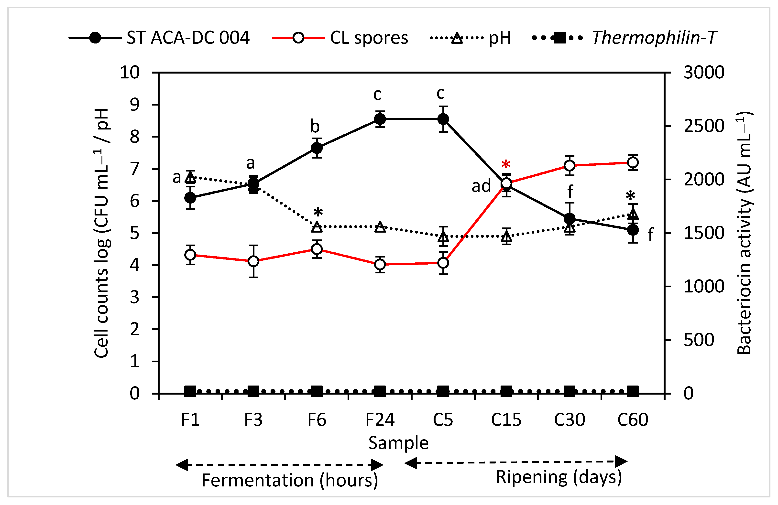 APA StyleAktypis, A., Baklagi, S., Georgalaki, M., Misyrli, G., & Georgala, A. (2026). Outgrowth Inhibition of Clostridium sporogenes Spores by a Bacteriocin-Producing Streptococcus thermophilus Strain, Under Conditions Simulating Graviera Cheese Manufacture. Fermentation, 12(3), 125. https://doi.org/10.3390/fermentation12030125