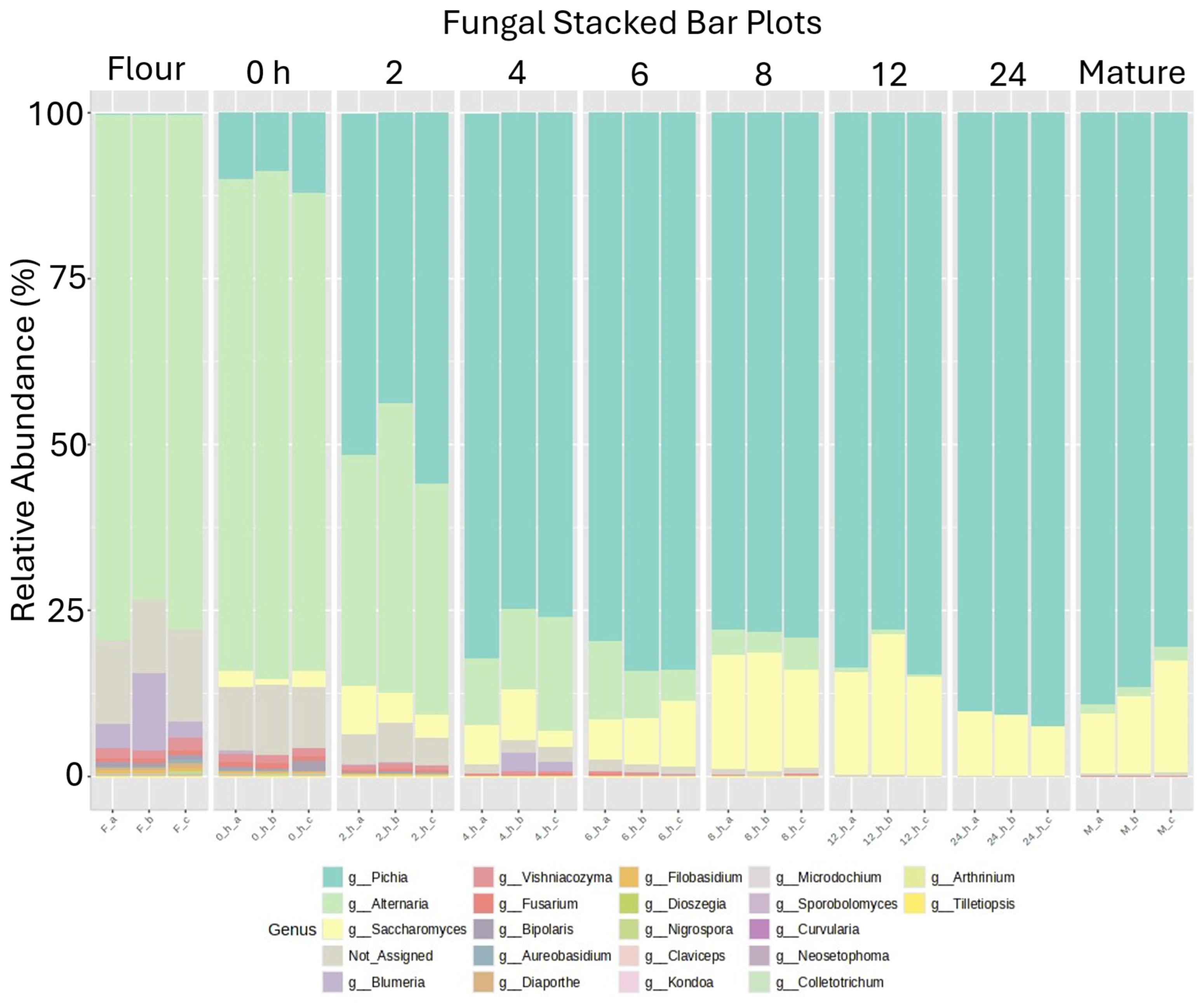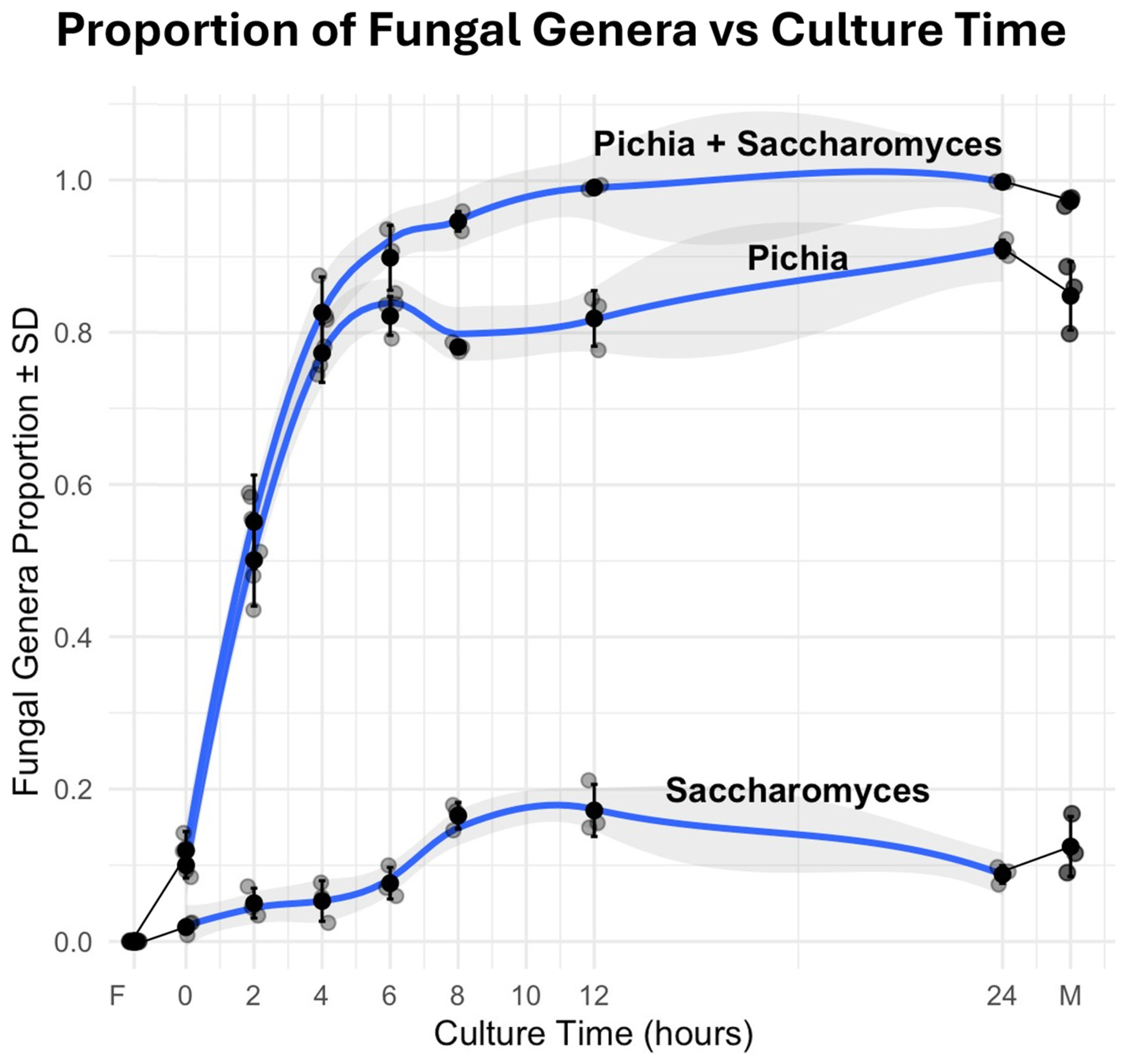Figure 10) still represents a significant proportion of the fungal microbiome at 8 h, becoming negligible only in the 12 h culture (