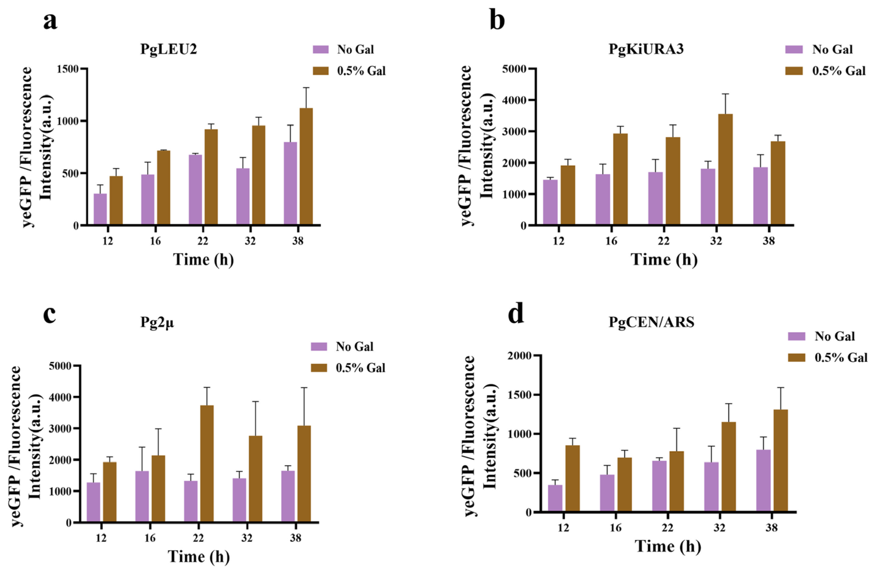| Pg2μ | pXY016-2-derived plasmid with an extra gRNA cassette targeting position 621–640 nt of the 2μ origin of replication | This study |