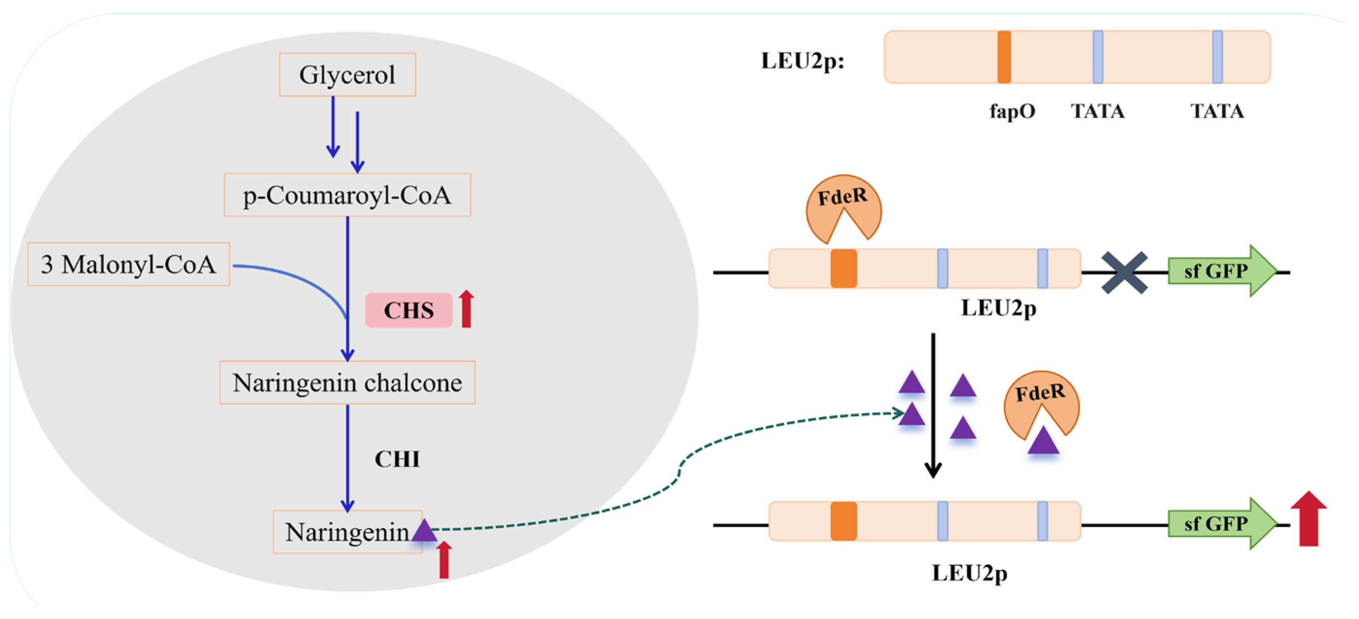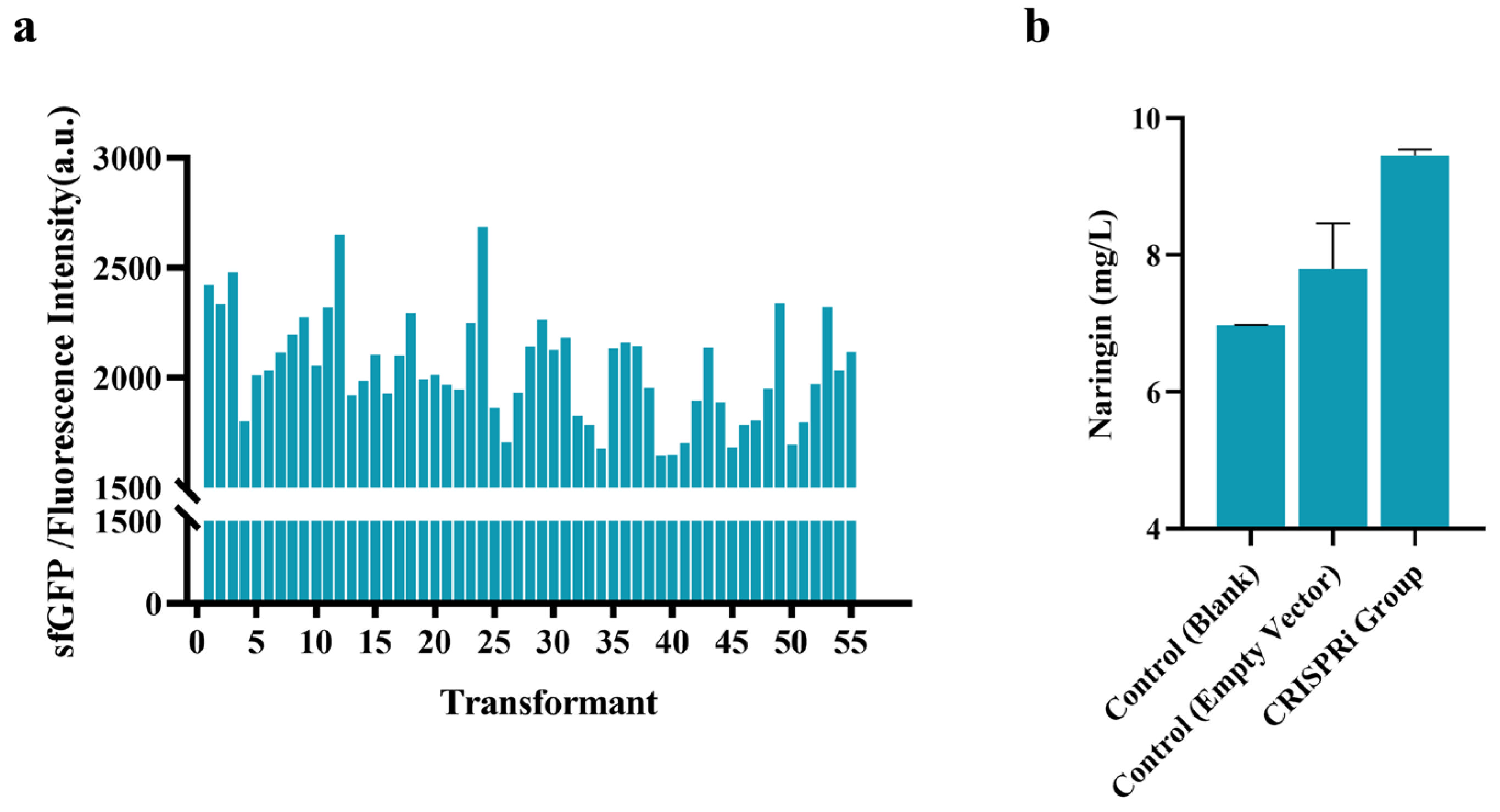- Tong, Y.; Li, N.; Zhou, S.; Zhang, L.; Xu, S.; Zhou, J. Improvement of Chalcone Synthase Activity and High-Efficiency Fermentative Production of (2S)-naringenin via In Vivo Biosensor-Guided Directed Evolution. ACS Synth. Biol. 2024, 13, 1454–1466. [Google Scholar] [CrossRef]