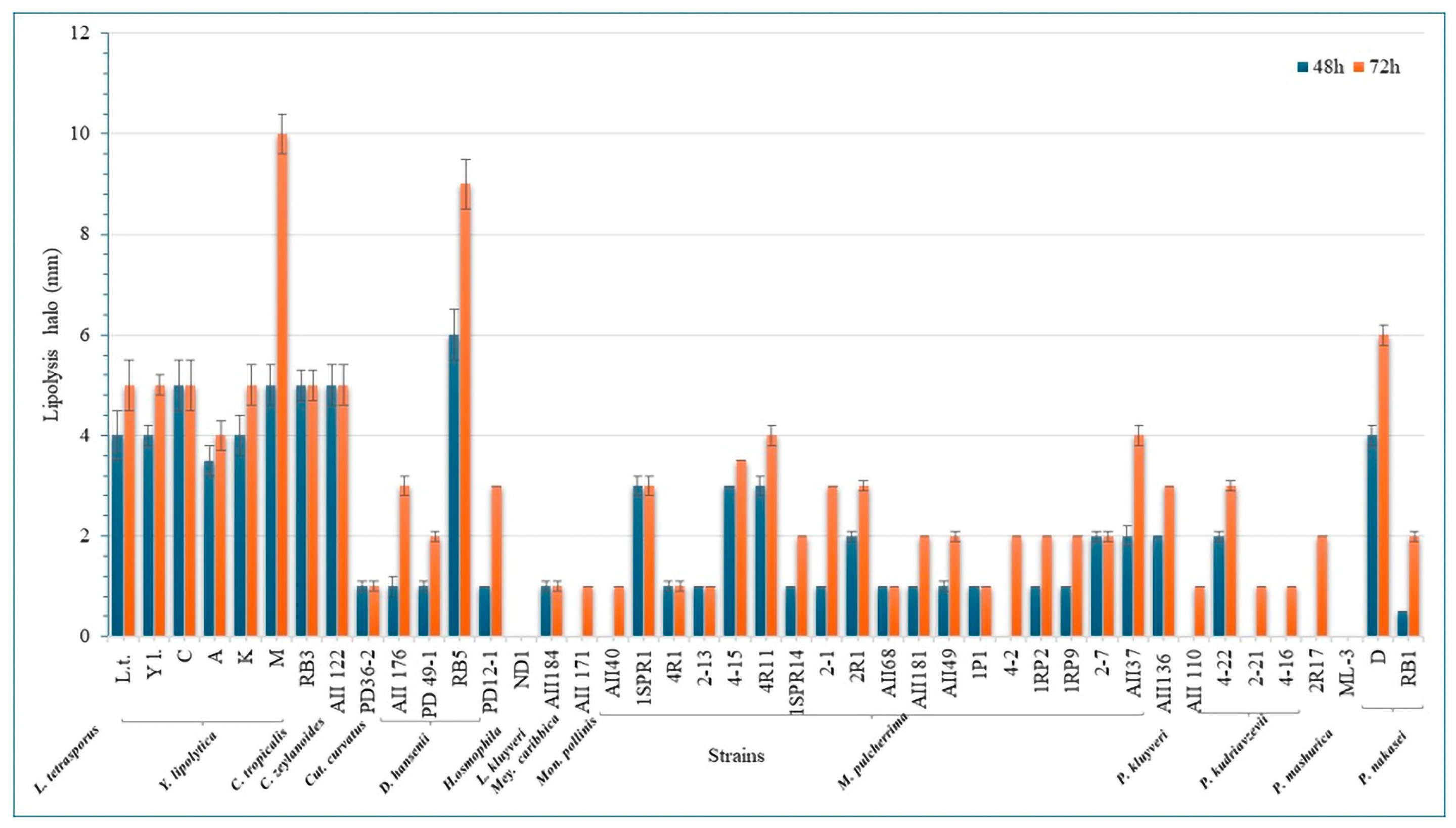 | Y.l. (Y. lipolytica) | 1.80 ± 0.36 | 7.54 ± 1.93 |
