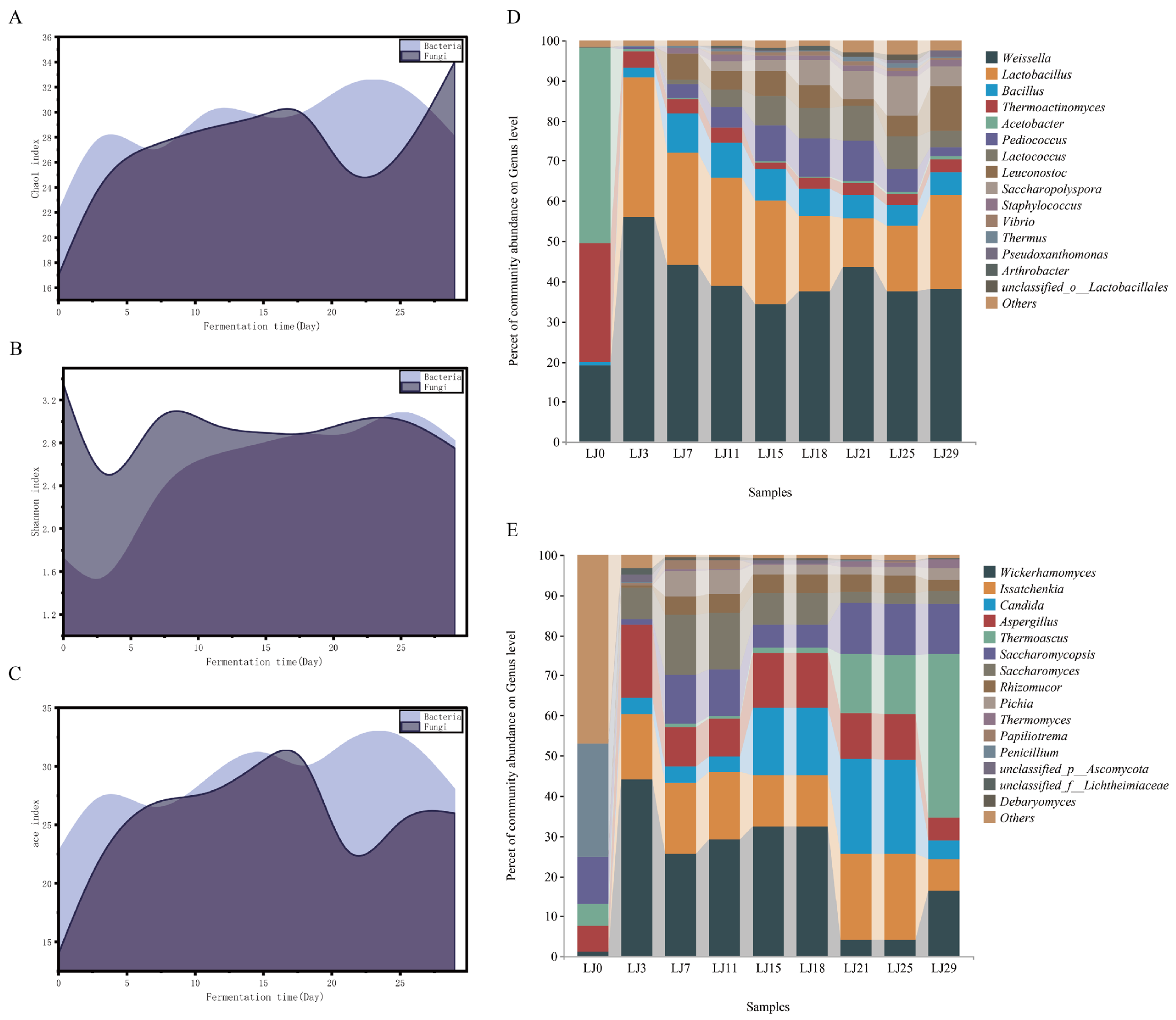 APA StyleWang, D., Wang, F., Tang, P., Wang, L., Xie, Y., Xiong, M., Luo, Q., Luo, Y., Huang, D., & Yang, L. (2026). Deterministic Drivers of Microbial Community Succession in Nongxiang Daqu Fermentation: Fungi Exhibit Stronger Environmental Selection Imprints than Bacteria. Fermentation, 12(4), 193. https://doi.org/10.3390/fermentation12040193