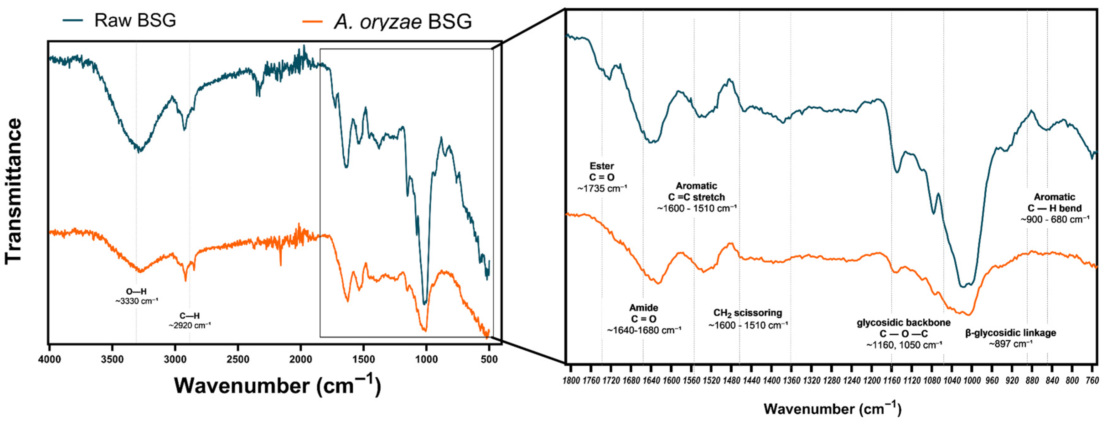 2.8. Composition Analysis and FTIR of Biomass After Saccharification