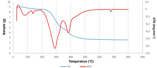 Thermoanalytical methods, especially thermogravimetry/differential thermogravimetry (TG/dTG), are already being utilized to measure the physical and chemical properties of coffee samples as a function of temperature or time. For the coffee samples analyzed in this study, the thermal decomposition occurred in four stages between 90 and 390 °C (Figure 5). A significant mass loss (68%) can be observed after the second stage at 190 °C. At temperatures above 420 °C only ashes remain in the final matter.