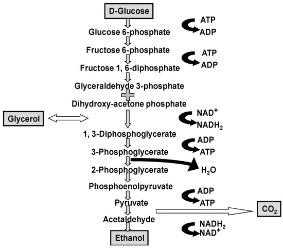 The primary metabolites that occur during the fermentation of either brewer’s or distiller’s wort are ethanol, carbon dioxide and glycerol (Figure 1) [1,2]. Although these metabolites contribute to beer and spirit properties, they have little effect on their flavour characteristics. The flavour and aroma of any beer or spirit is, in large part, determined by secondary metabolic products of the yeast strain employed together with the wort composition and the fermentation conditions used [3,4].