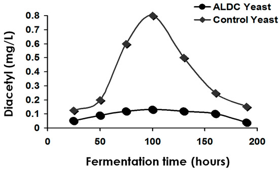 - Yamano, S.; Tomizuka, K.; Sone, H.; Imura, M.; Takeuchi, S.; Inoue, T. Brewing performance of a brewer’s yeast having α-acetolactate decarboxylase from Acetobacter. aceti spp. xylinum in brewer’s yeast. J. Biotechnol. 1995, 39, 21–26. [Google Scholar]