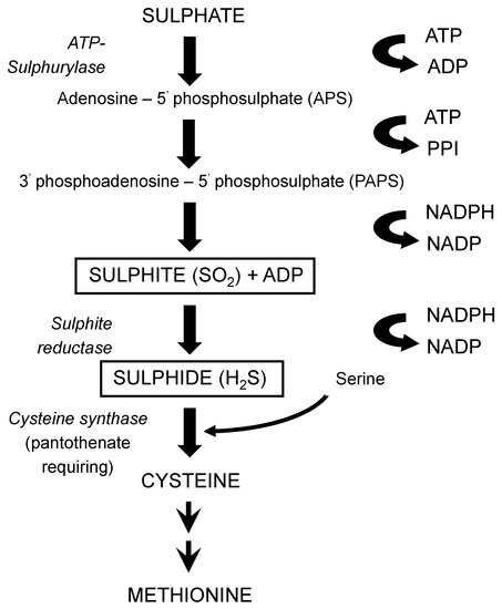- Hansen, J.; Kielland-Brandt, M.C. Inactivation of MET2 in brewer’s yeast increases the level of sulfite in beer. J. Biotechnol. 1996, 50, 75–87. [Google Scholar] [CrossRef]