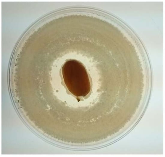 After incubation for 14 days at 20 °C, fungal mycelia and spores were scraped from well-grown potato dextrose agar (PDA) plates and transferred to falcon® tubes containing 10 mL of sterile water. The suspensions were homogenized by vortexing to release conidia from the mycelium and filtered through two layers of Miracloth® (MilliporeSigma, Munich, Germany) in order to obtain spore suspensions (≈106 spores/mL).
