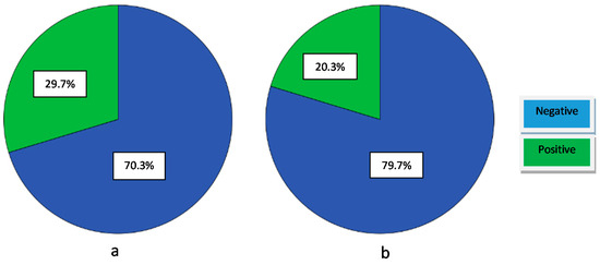 Percentage of number of: (a) proteolytic positive isolates and (b) lipolytic positive isolates.