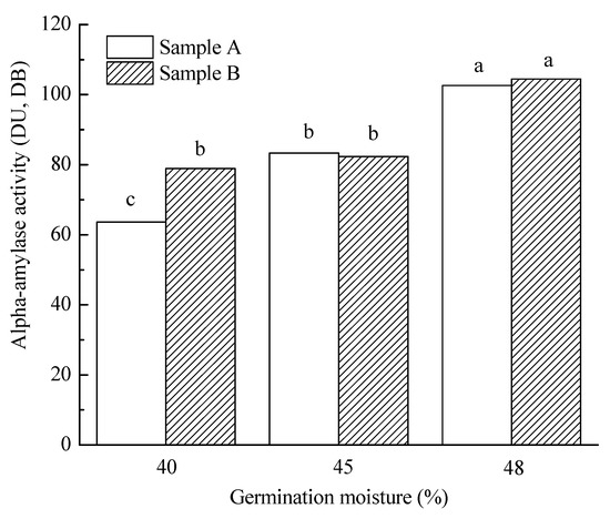 - American Society of Brewing Chemists. ASBC Methods of Analysis (Online), 14th Edition. Barley-2 Physical Tests (B. Bushelweight, C. Assortment, D. 1000-Kernel Weight, H. Injury by Sprout); Barley-3 Germination; Barley-5 Moisture; Malt-3 Moisture; Malt-4 Extract; Malt-6 Diastatic Power; Malt-7 Alpha-Amylas; American Society of Brewing Chemists: St. Paul, MN, USA, 2009; ISBN 978-1-881696-21-6. [Google Scholar]