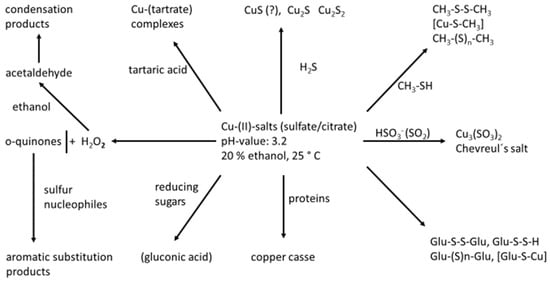 Copper-(II) salts (added in order to remove sulfidic off-odors) may react in a manifold way with all kinds of wine components, as outlined in Figure 3.