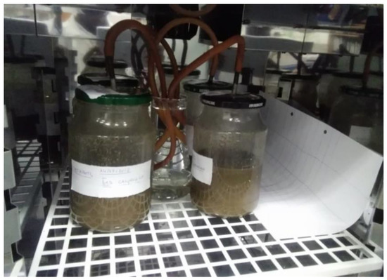 The degree of carbon dioxide (CO2) was determined. Each handmade fermenter was equipped with a rubber hose (Figure 2), which was dipped in water to allow CO2 to escape while preventing oxygen from entering the fermenter. The mass of each fermenter was measured before and during fermentation at 24 h intervals. The mass of the CO2 eluting from the fermenters was then quantified using Equation (1).