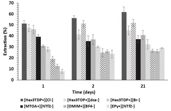 17]. Because of these features, they are regarded as a real option to substitute organic solvents in liquid–liquid extraction processes both in bulk form and in membrane-based technologies [