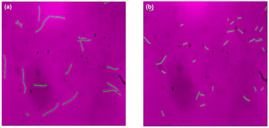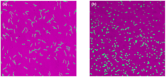 Automated (oCelloScopeTM) images for 10th hour samples taken from (a) pH-A and (b) pH-B.