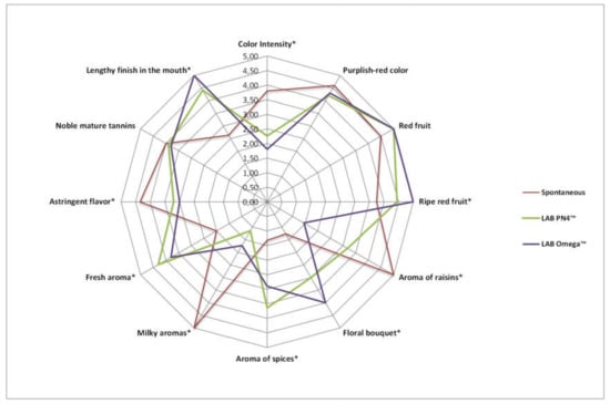 - Antalick, G.; Perello, M.C.; De Revel, G. Co-inoculation with yeast and LAB under winery conditions: Modification of the aromatic profile of merlot wines. S. Afr. J. Enol. Vitic. 2013. [Google Scholar] [CrossRef]