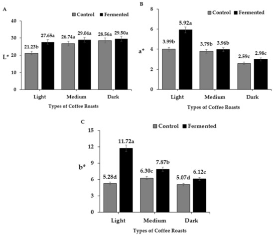 - Vignoli, J.A.; Viegas, M.C.; Bassoli, D.G.; Benassi, M.T. Roasting process affects differently the bioactive compounds and the antioxidant activity of arabica and robusta coffees. Food Res. Int. 2014, 61, 279–285. [Google Scholar] [CrossRef]