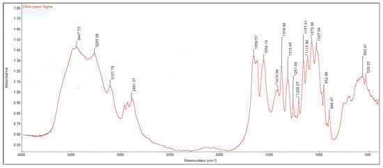 | Commercial Chitin | 46.1 ± 0.1 | 7.3 ± 0.1 | 6.7 ± 0.1 | 6.9 ± 0.1 |