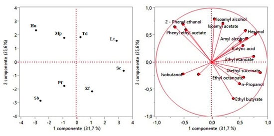 - Moreira, N.; Mendes, F.; Guedes de Pinho, P.; Hogg, T.; Vasconcelos, I. Heavy sulphur compounds, higher alcohols and esters production profile of Hanseniaspora uvarum and Hanseniaspora guilliermondii grown as pure and mixed cultures in grape must. Int. J. Food Microbiol. 2008, 124, 231–238. [Google Scholar] [CrossRef]