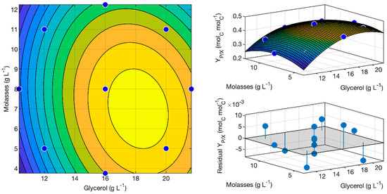 Relative carbon yield = −0.7770 + 0.1156 × Glycerol + 0.0570 × Molasses − 0.0009 × Glycerol × Molasses × 0.0030 × Glycerol2 − 0.0028 × Molasses2
