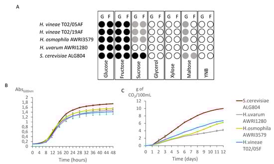 3.4. Alcoholic Fermentation in H. vineae Strains