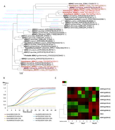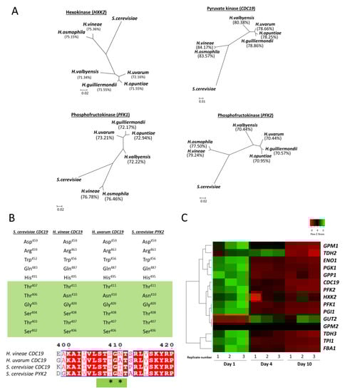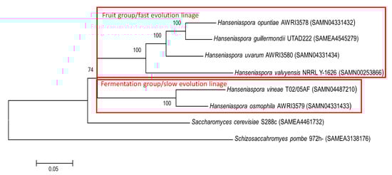 - Riley, R.; Haridas, S.; Wolfe, K.H.; Lopes, M.R.; Hittinger, C.T.; Göker, M.; Salamov, A.A.; Wisecaver, J.H.; Long, T.M.; Calvey, C.H.; et al. Comparative genomics of biotechnologically important yeasts. Proc. Natl. Acad. Sci. USA 2016, 113, 9882–9887. [Google Scholar] [CrossRef]