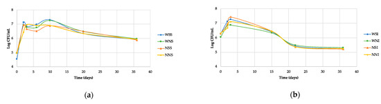 Total yeast population during spontaneous (a) and inoculated (b) microvinification trials of Figure 2 (WSS and WSI), washed grapes without SO2 (WNS and WNI), non-washed grapes with SO2 (NSS and NSI), non-washed grapes without SO2 (NNS and NNI).