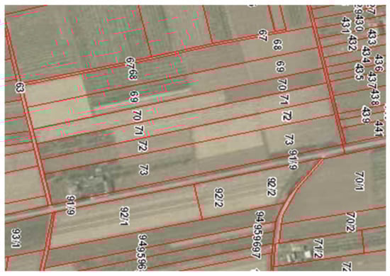 Plan of plots for hop cultivation on farm A (71, 72, 73).