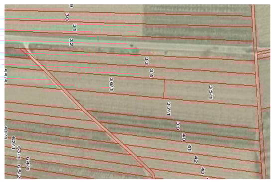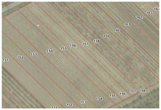 Downy mildew was observed on hop plants only in locality A. After directing the shoots to the guides, the systemic preparation Aliette WG (aluminum fosetyl) was used. This treatment was then repeated after 14 days and after the hops the grid level had reached. This disease, after performing plant protection treatments, did not cause any significant losses. Downy mildew appeared only on the “Marynka” variety before passaging. In the case of the cultivars: ‘Magnum’, ‘Sybilla’ and ‘Lomik’, the biggest problem in cultivation was the plum-hop aphid (Phorodon humuli Schrank), the greatest intensity of which took place before the hop flowering. The agents that were used to combat it are: Confidor 200 SL, Imidor 200 SL and Sherpa 100 EC (Table 3). Treatments were carried out several times, in accordance with the recommendations of the Institute of Plant Protection and the withdrawal period of these insecticides. The occurrence of other diseases and pests did not pose a threat to the hop plantation. The estimated hop growing area was divided into plots (Figure 1, Figure 2, Figure 3 and Figure 4).