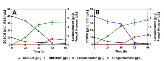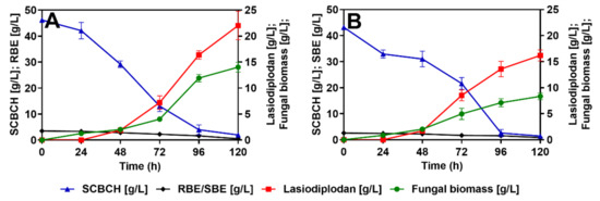 3.2. Impact of Lignocellulosic Carbon Source on Lasiodiplodan Production