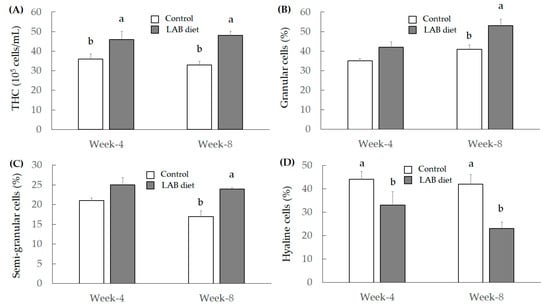 2.5.2. Total Hemocyte Count (THC) and Differential Hemocyte Count (DHC)