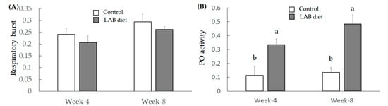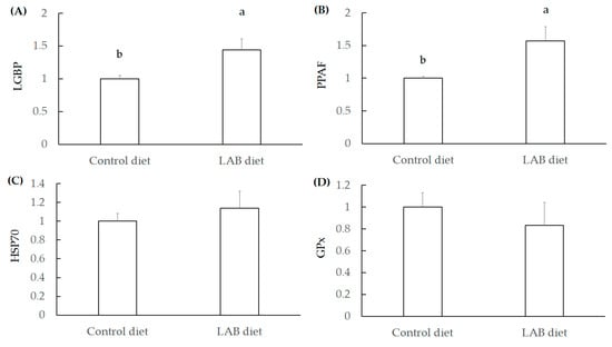 | LAB feed | 29.8 ± 0.8 a | 13.6 ± 1.8 | 63.3 ± 8.7 a |