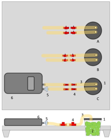 - Bower, J.H.; Jobling, J.J.; Patterson, B.D.; Ryan, D.J. A method for measuring the respiration rate and respiratory quotient of detached plant tissues. Postharvest Biol. Technol. 1998, 13, 263–270. [Google Scholar] [CrossRef]
