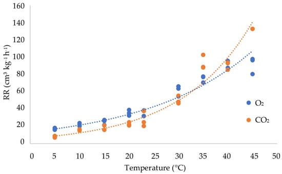 3.2. Influence of Temperature on the Respiration Rate