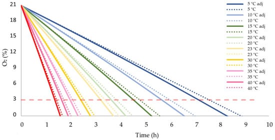 Effect of Temperature and Time on Oxygen Consumption by Olive Fruit: Empirical Study and Simulation in a Non-Ventilated Container
