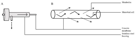 - Salgado-Manjarrez, E.; Albasi, C.; Riba, J.-P. A two-reservoir, hollow-fiber bioreactor for the study of mixed-population dynamics: Design aspects and validation of the approach. Biotechnol. Bioeng. 2000, 69, 401–408. [Google Scholar] [CrossRef]