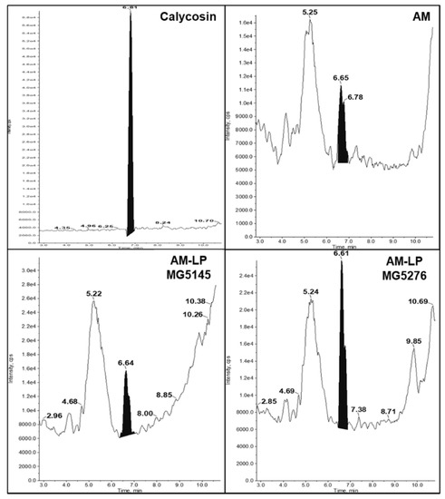 3.2. Method Validation of Calycosin for AM-NF and AM-LP Analysis by UPLC