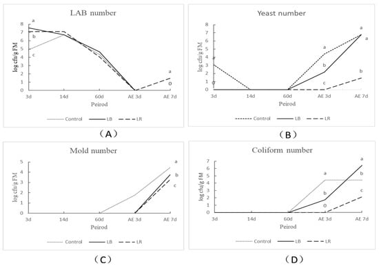- Guan, H.; Ke, W.; Yan, Y.; Shuai, Y.; Li, X.; Ran, Q.; Yang, Z.; Wang, X.; Cai, Y.; Zhang, X. Screening of natural lactic acid bacteria with potential effect on silage fermentation, aerobic stability and aflatoxin B1 in hot and humid area. J. Appl. Microbiol. 2020, 128, 1301–1311. [Google Scholar] [CrossRef]
