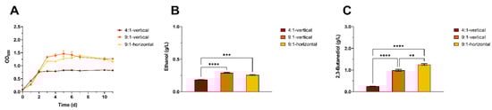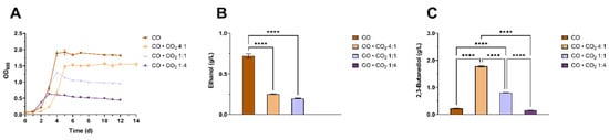 3.4. Characterization of the Effects of Different CO to CO2 Ratios on 2,3-BDO Production by Clostridium ljungdahlii