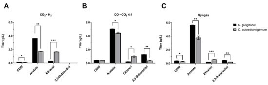 Chicago/Turabian StyleRicci, Luca, Valeria Agostino, Debora Fino, and Angela Re. 2021. "Screening of Gas Substrate and Medium Effects on 2,3-Butanediol Production with C. ljungdahlii and C. autoethanogenum Aided by Improved Autotrophic Cultivation Technique" Fermentation 7, no. 4: 264. https://doi.org/10.3390/fermentation7040264