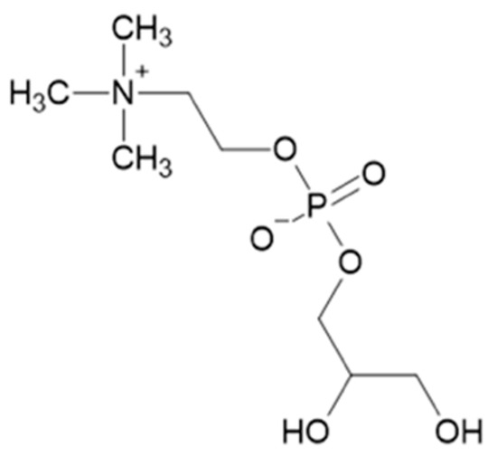 α-GPC can be produced chemically or with the use of enzymes. Chemical methods typically involve either hydrolysis of phosphatidylcholine (PC) or condensation of glycerol derivatives with phosphocholine donors using basic catalysts [60,61,62]. The chemical processes can produce toxic fumes and require the use of strong acids and harmful or undesirable solvents [62,63]. The use of toxic substrates can produce α-GPC that is not safe for use in food and, thus, not marketable. Alternatively, α-GPC has been produced by enzymatic hydrolysis of PC in aqueous media [52,57,64,65,66], employing phospholipases (Figure 2) [64]. Enzymatic production of α-GPC is advantageous, as the amounts of chemical reagents can be reduced, thereby making a comparably inexpensive product that is suited for use in food and cosmetic products [64]. However, enzymatic production of α-GPC can also be difficult due to the limited solubility of PC in aqueous phases and long reaction times (e.g., low activity) for phospholipases [67,68,69]. Surfactants can be used to improve α-GPC production, while being environmentally friendly [69].