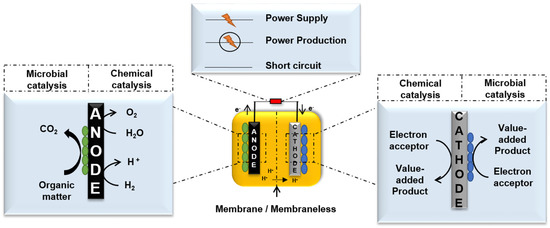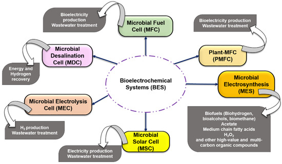 An in-depth overview of the concepts associated with the highly versatile microbe–electrode interaction-based microbial BES technology and a multitude of choices available to carry out a diverse range of processes at both anodic and cathodic chambers simultaneously [43].