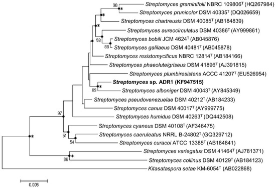 - Shirling, E.B.; Gottlieb, D. Methods for characterization of Streptomyces species. Int. J. Syst. Evol. Microbiol. 1966, 16, 313–340. [Google Scholar] [CrossRef]
