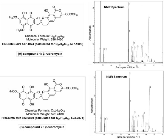 3.3. Physicochemical Analysis of the Microbial Extract and Isolation of β- and γ-Rubromycin