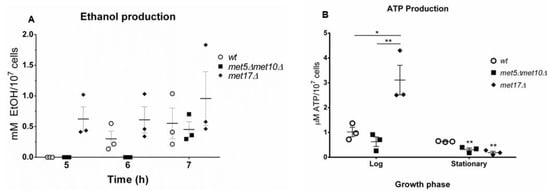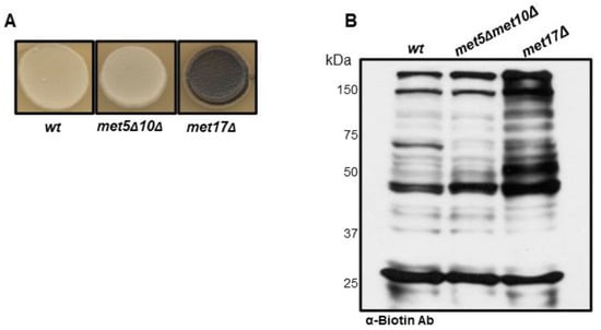 - D’Andrea, R.; Surdin-Kerjan, Y.; Pure, G.; Cherest, H. Molecular Genetics of Met17 and Met25 Mutants of Saccharomyces cerevisiae: Intragenic Complementation between Mutations of a Single Structural Gene. Mol. Gen. Genet. 1987, 207, 165–170. [Google Scholar] [CrossRef] [PubMed]