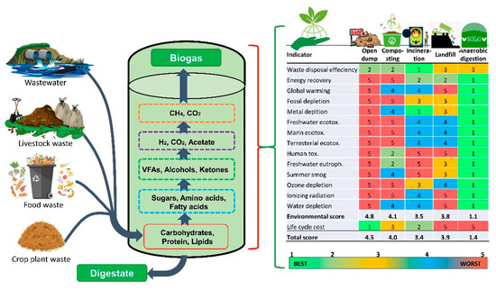 Comparing anaerobic digestion to other waste management routes using commonly used organic waste steams [28], copyright permission number 5345730119827.