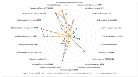 2.5.4. Determination of Minimum Inhibitory Concentration (MIC), Minimum Bactericidal Concentration (MBC), and Minimum Fungicidal Concentration (MFC)